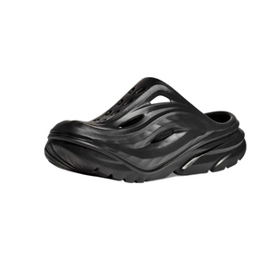 This slip-on shoe is designed with a sugarcane EVA midsole and ventilated air flow channels for breathability, making it suitable for recovery after running or other activities. The black color is a popular choice for this model.