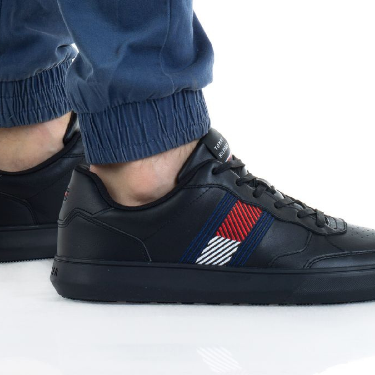 حذاء رياضي تومي هيلفيغر Essential Flag من الجلد باللون الأسود
