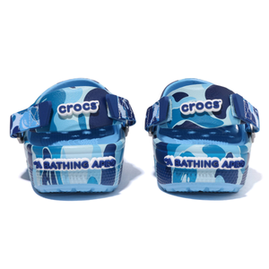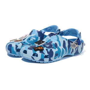 Design: The classic clog silhouette is covered in BAPE's signature blue camouflage pattern.
