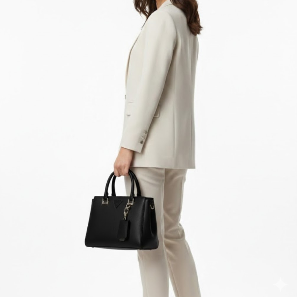 Made from high-quality synthetic leather with a structured dome silhouette, the Cathleen handbag keeps its shape while offering practical space for your essentials. The secure top zip closure protects your belongings, while the dual top handles and detachable shoulder strap provide versatile carrying options. Finished with polished hardware and signature GUESS logo detailing, this bag delivers a refined and stylish look.