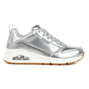 Air-Cooled MF, Skech-Air. Shine on in fashionable comfort wearing Skechers Street™ Uno - Metallixs. This lace-up sneaker features a leather upper in a metallic finish with a Skechers Air?Cooled Memory Foam® insole and Skech-Air® visible airbag midsole.