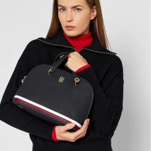 - Tommy Hilfiger monogram plaque on front.